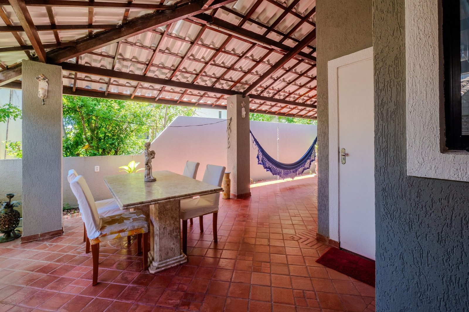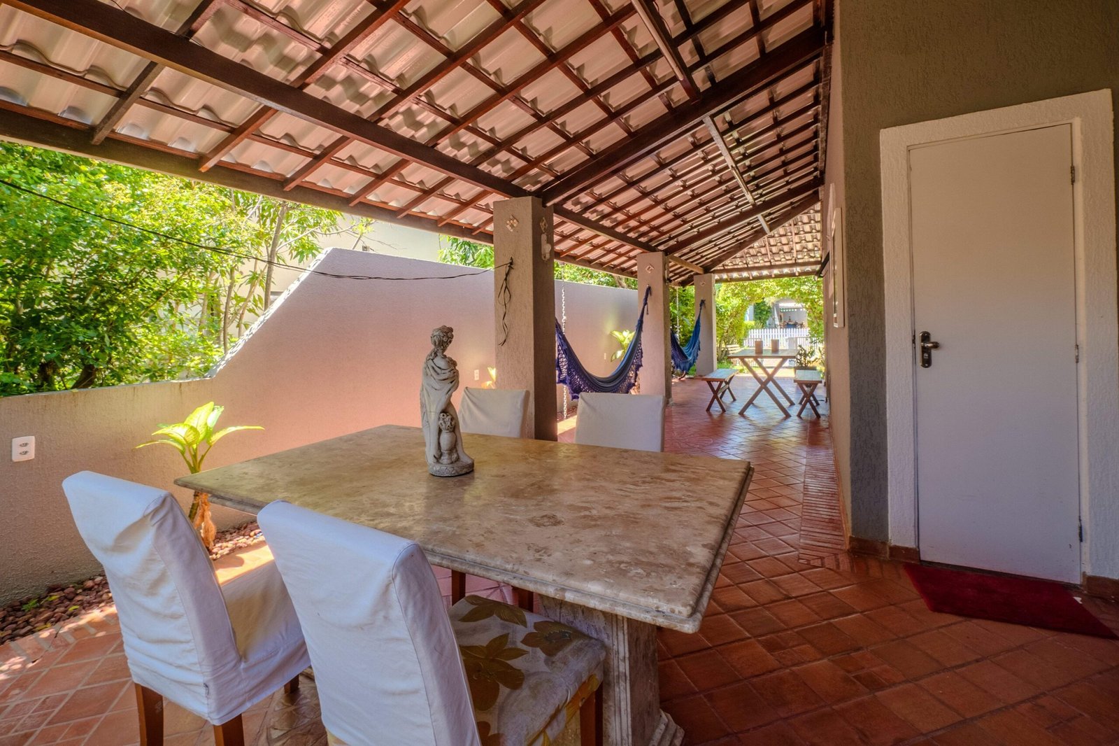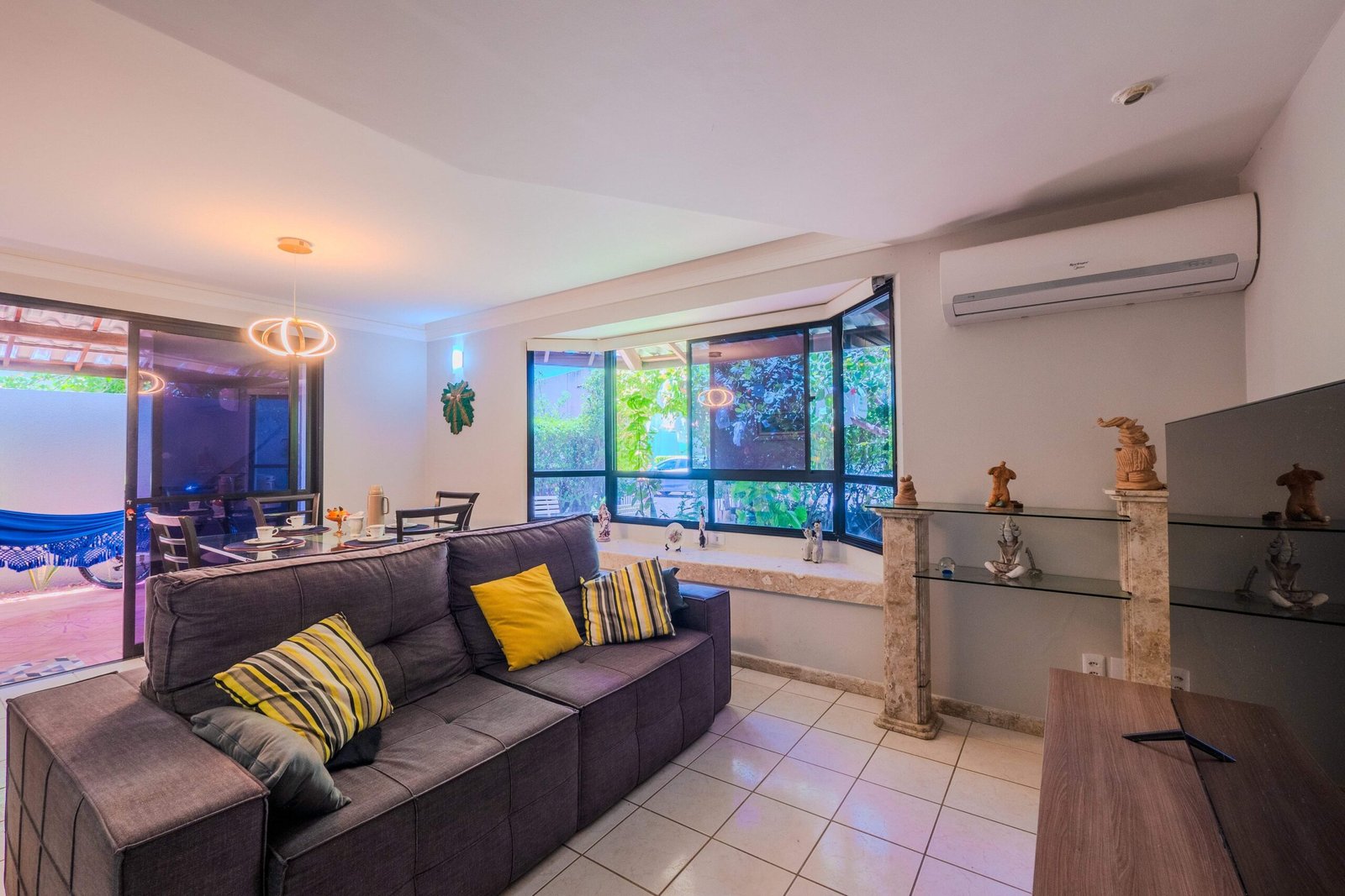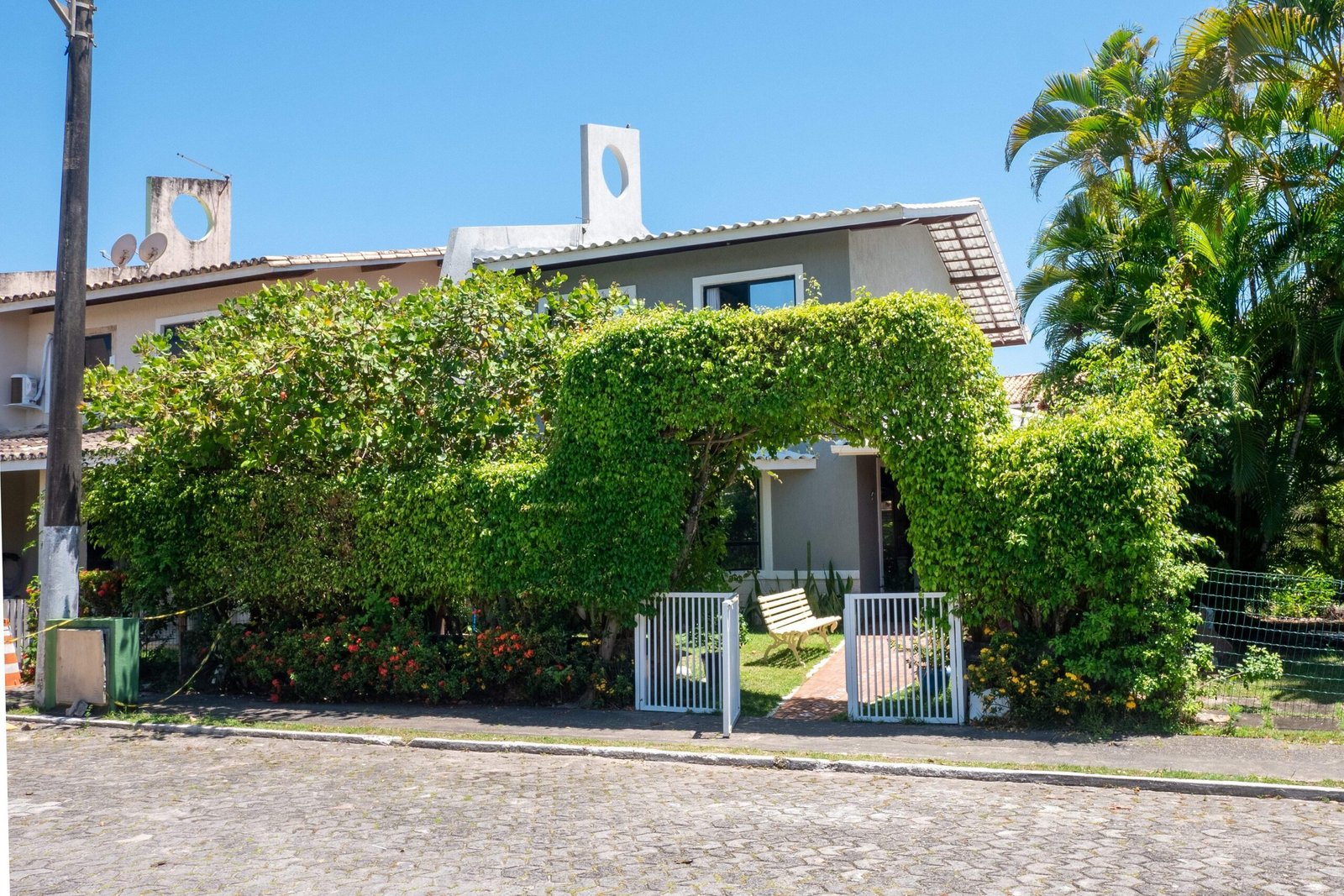 A 500 metros do mar, esta charmosa casa tem 3 quartos (1 suíte), cozinha completa, sala de TV e uma varanda deliciosa com mesas e redes para relaxar. A área externa tem churrasqueira e um pátio sombreado por um cajueiro. No condomínio, você conta com piscinas, quadra de tênis, academia, parquinho, ao lado da Lagoa. Um espaço confortável e com atendimento especial para tornar sua estadia inesquecível.